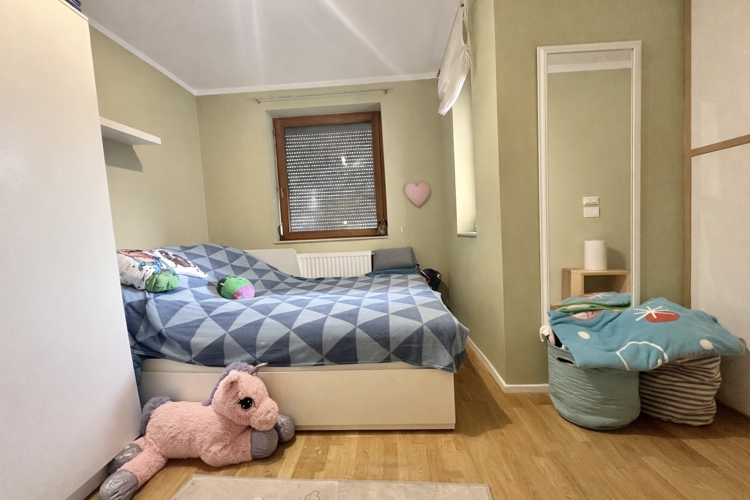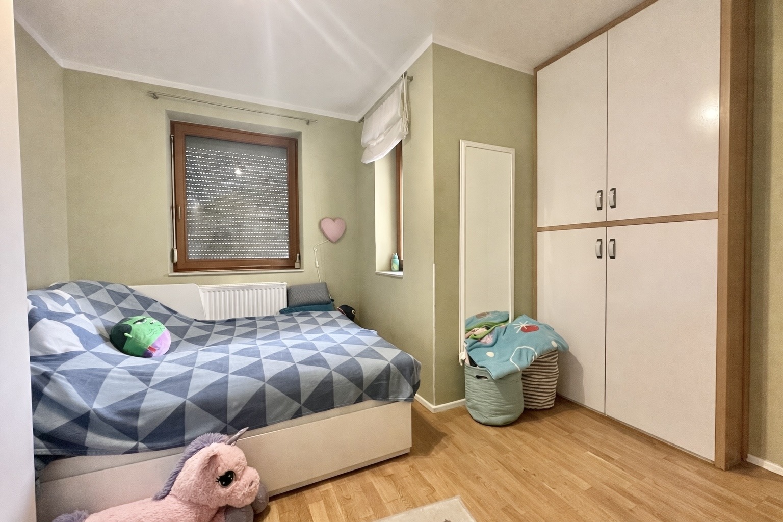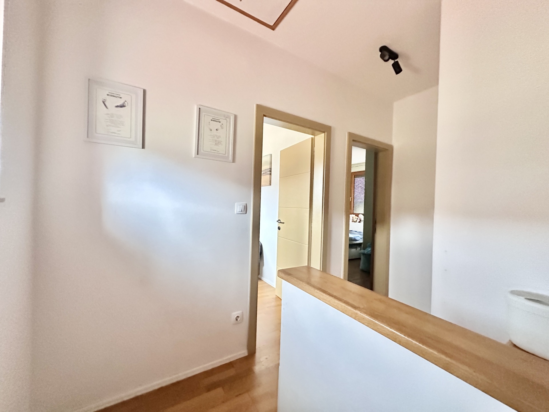 A felső szinten két külön nyíló szoba kapott helyet, valamint egy kádas fürdőszoba WC-vel, így az ingatlan dupla komfortos. A két szint jól elkülönül egymástól, ami különösen előnyös lehet gyermekes családok számára vagy akár otthoni munkavégzés esetén is.