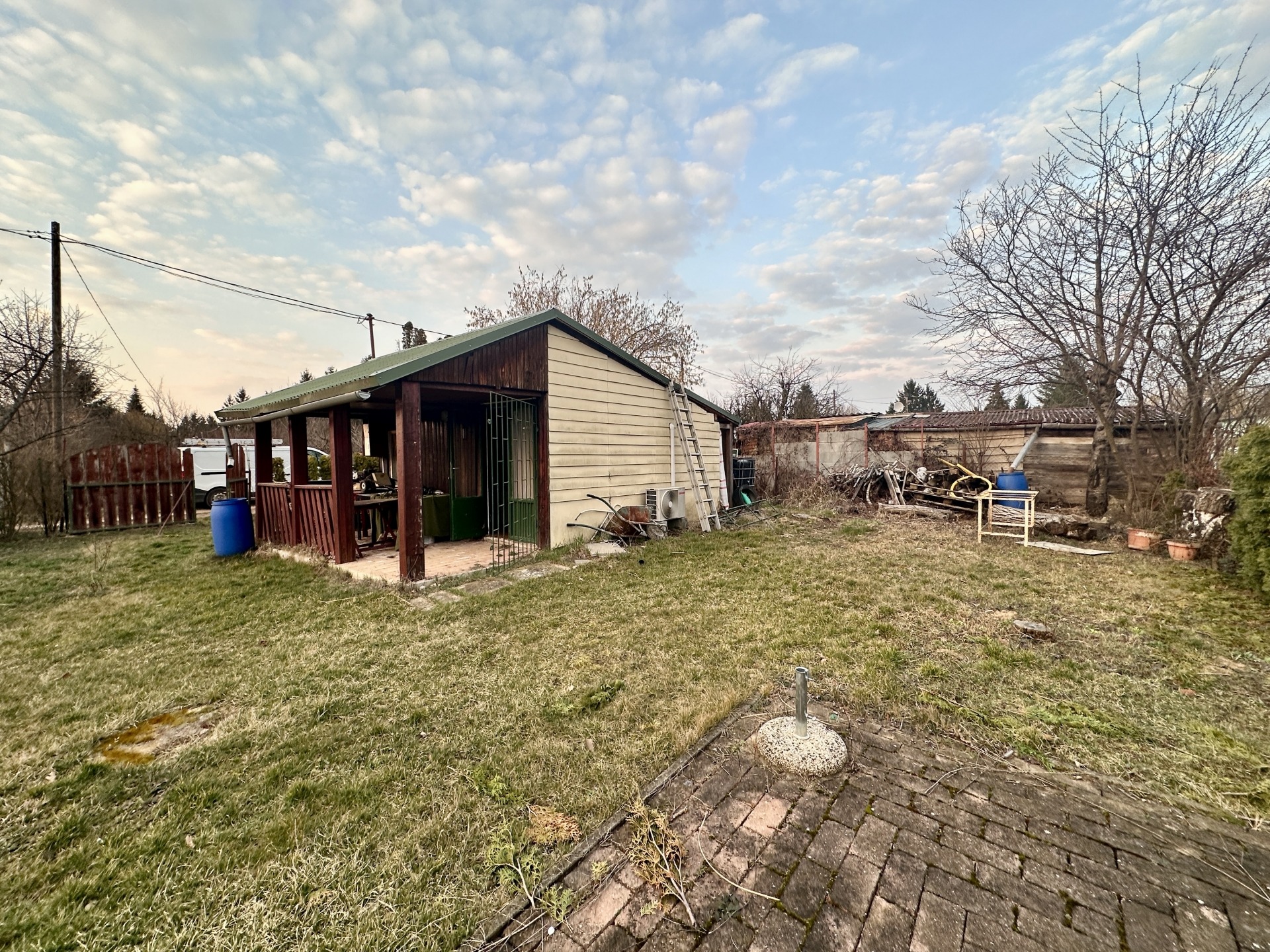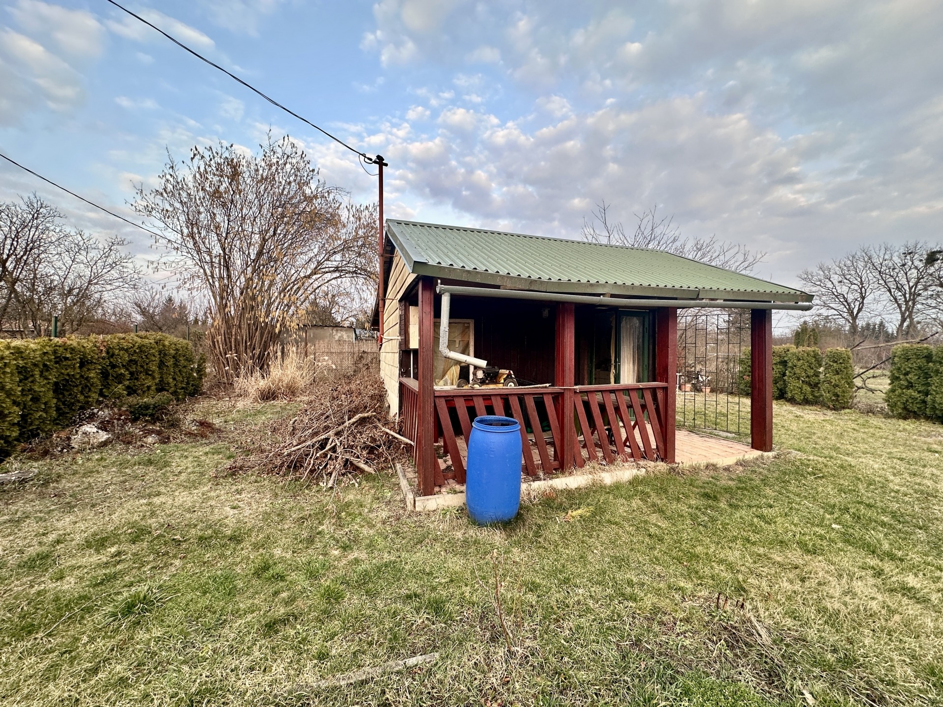A területen egy kb. 20 m²-es könnyűszerkezetes ház található, amely ideális lehet hétvégi tartózkodásra vagy kerti házként.