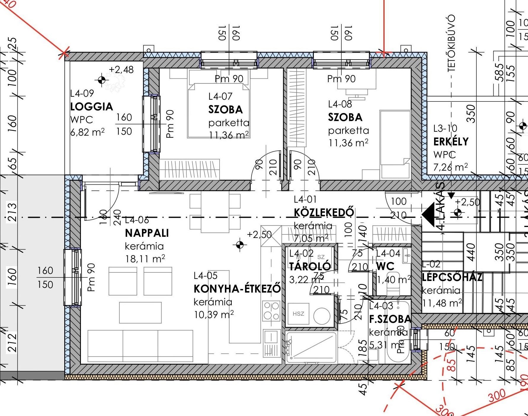 A lakások praktikus elrendezéssel, nappali és két külön nyíló szoba kialakítással készülnek, jól átgondolt, élhető helyiség kiosztással, amely tökéletesen megfelel a mai lakhatási igényeknek. A kínálatban 69–85 m² közötti alapterületű lakások érhetők el: az emeleti 69-75 m²-esek, míg a földszinti 75 m²-es, illetve 85 m²-es méretben készülnek. Az emeleti lakások mindegyikéhez saját kültéri kapcsolat kapcsolódik erkély vagy loggia formájában, melyek mérete 7 m².